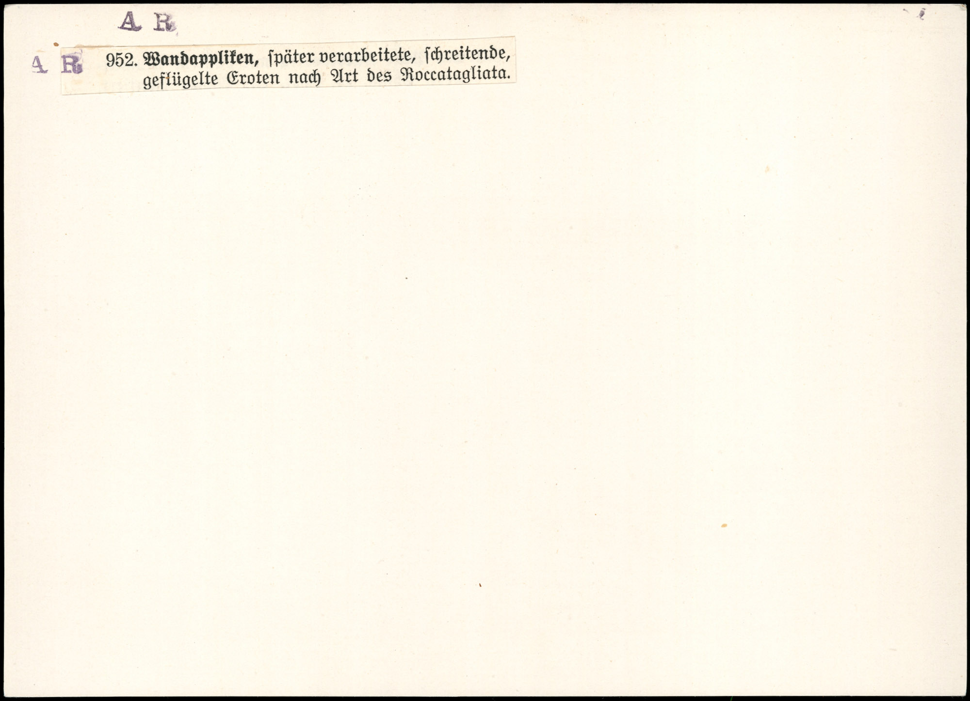 | Beschreibung | Wandappliken, später verarbeitete, schreitende, geflügelte Eroten nach Art des Roccatagliata. | |