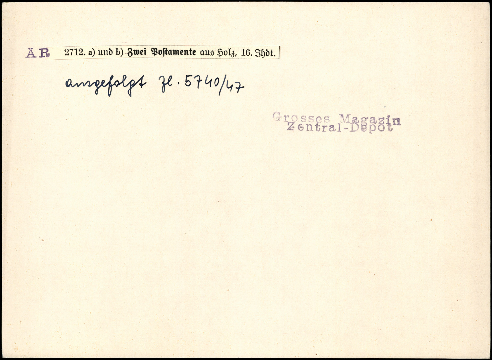 | Beschreibung | a) und b) Zwei Postamente aus Holz, 16.Jhdt. | Zwei Postamente aus Holz, 16. Jhdt. |