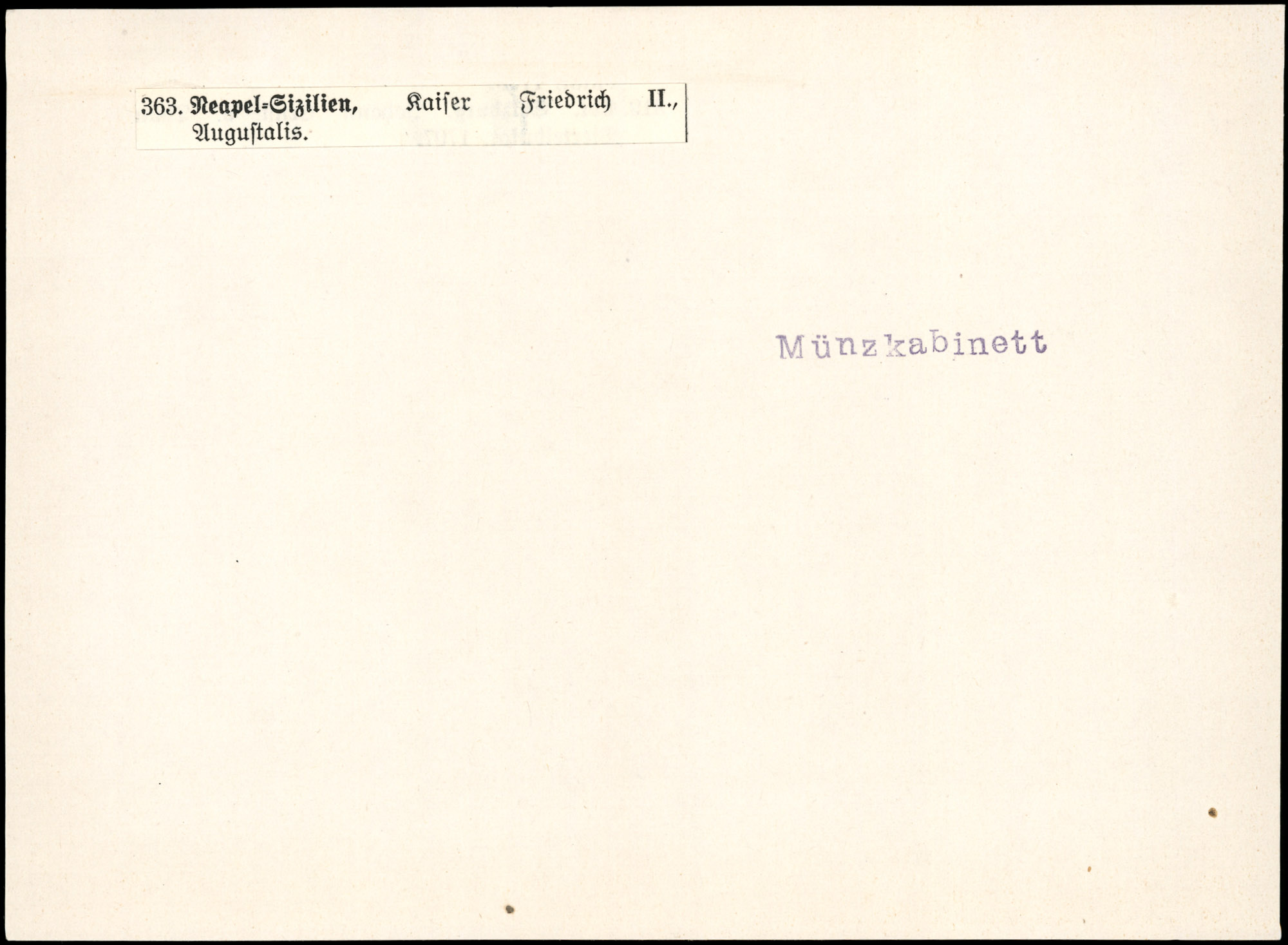 | Beschreibung | Neapel-Sizilien, Kaiser Friedrich II., Augustalis. | Karteikarte nicht auffindbar |