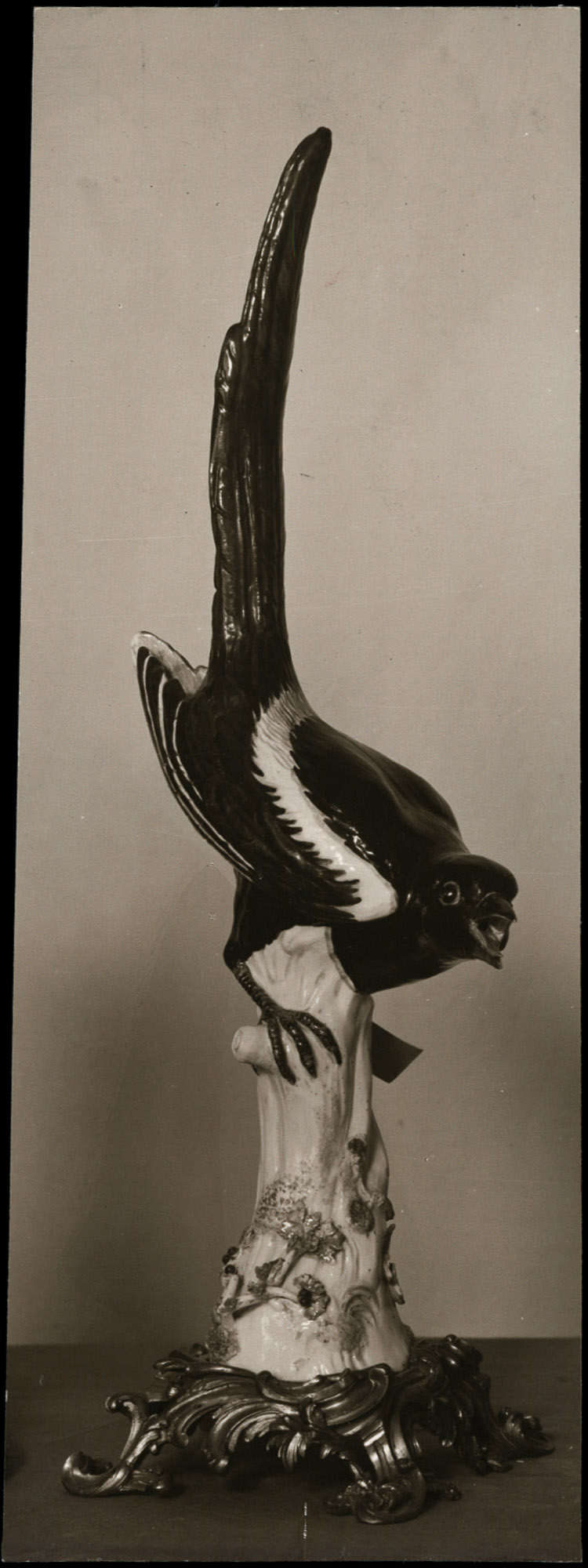 | Beschreibung | a), b) Bunte Figur aus Meißner Porzellan, schreitende Elster, in vergoldeter Bronzemontierung. | Bunte Figur aus Meißner Porzellan, schreitende Elster, in vergoldeter Bronzemontierung. |