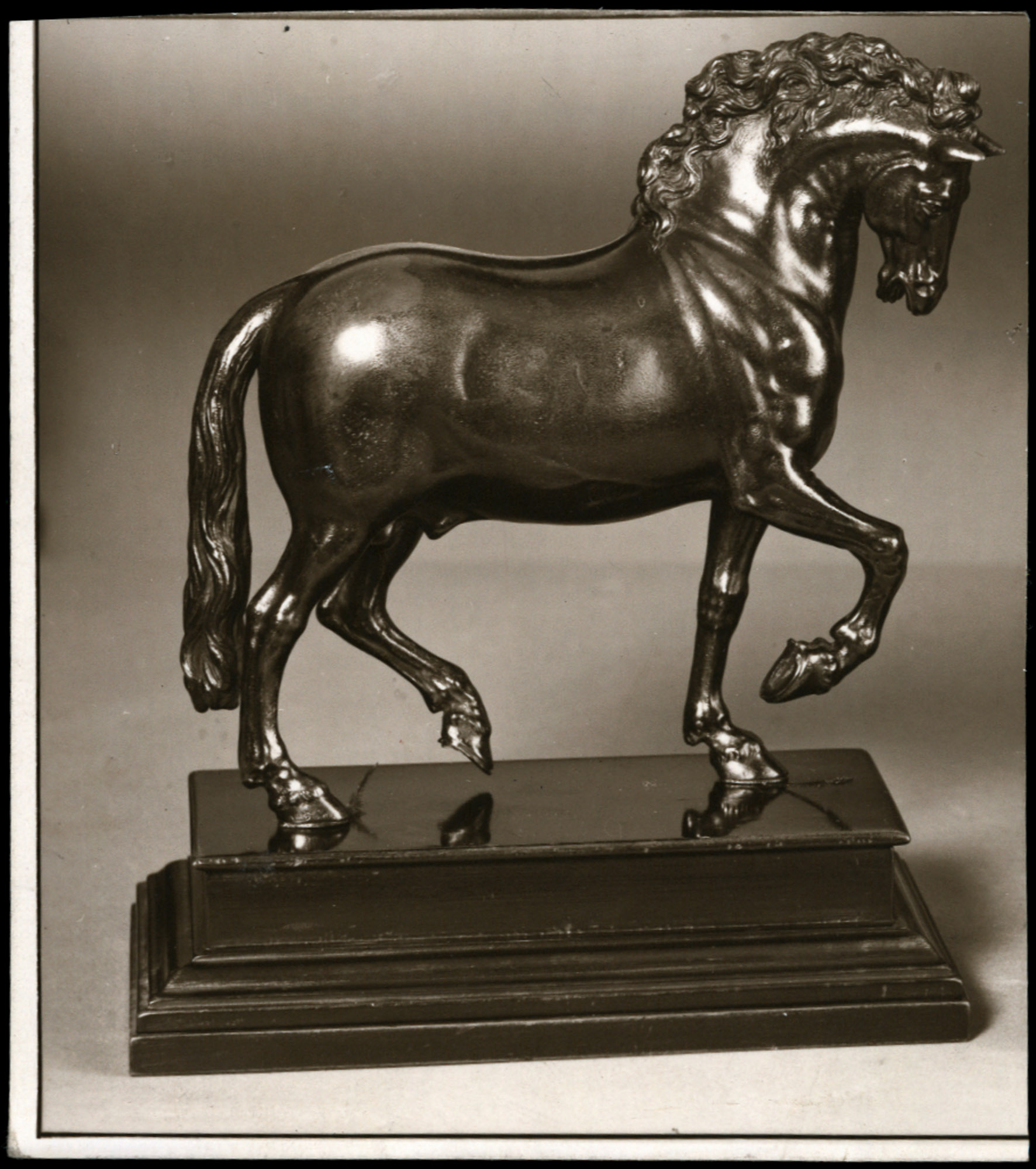 | Beschreibung | Pferd aus Bronze, 17. Jhdt. (527). | |