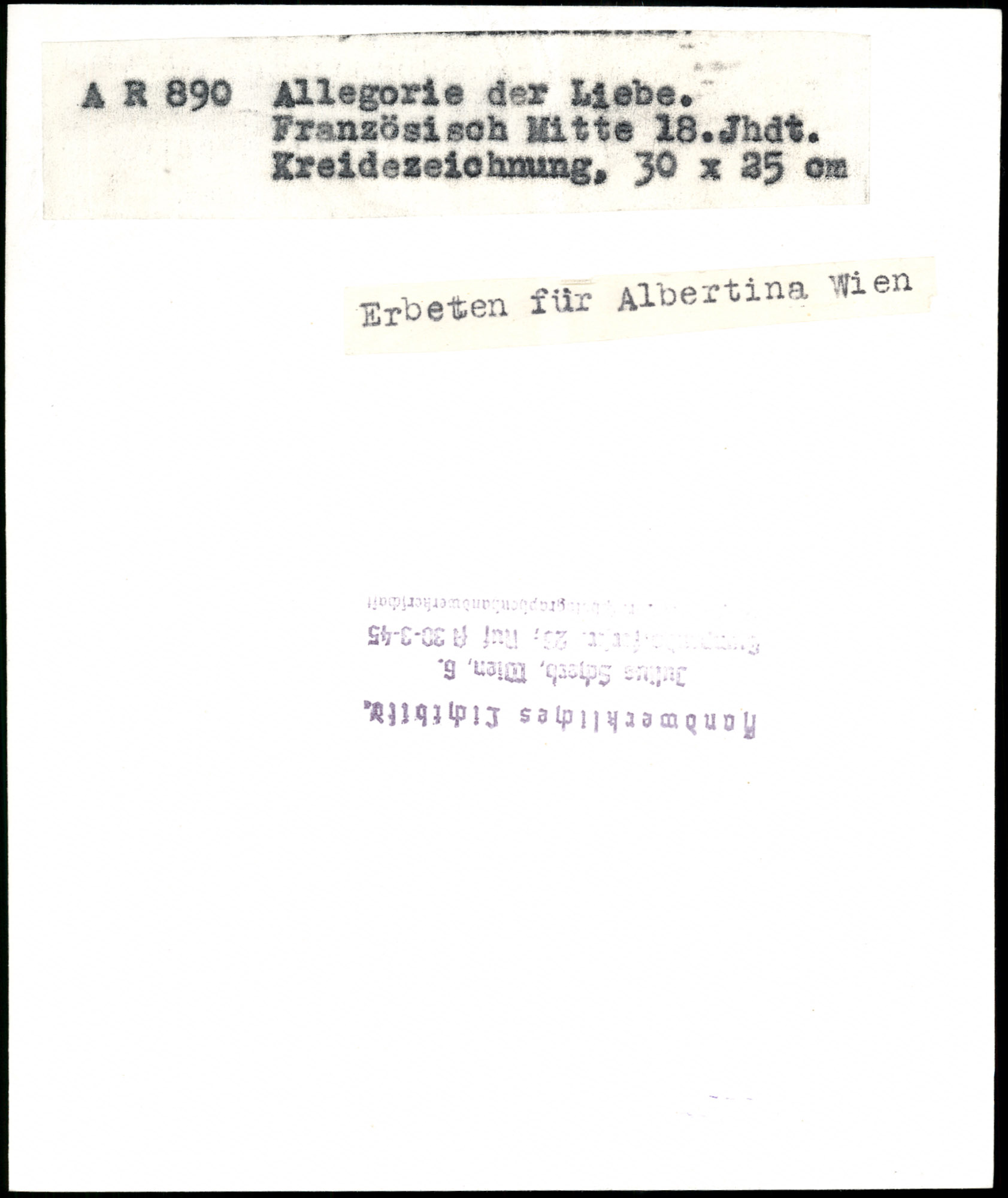 | Beschreibung | Allegorie der Liebe, Kreidezeichnung. Französisch, Mitte 18. Jhdt. 30 X 25. | |
