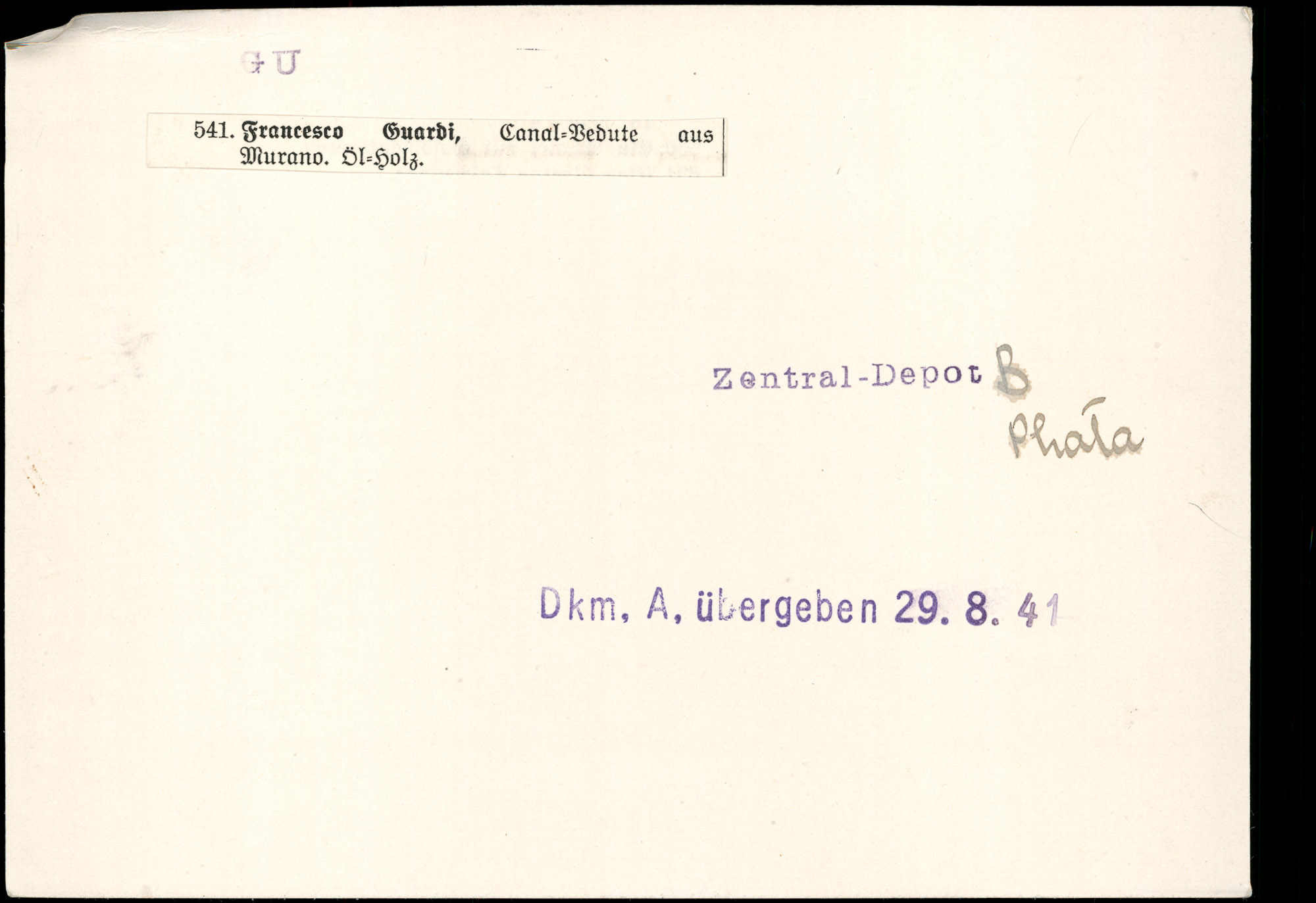 | Karteikarte Annotation | Zentral-Depot B Photo Dkm.A. übergeben 29.8.41 | Karteikarte: ausgefolgt am 1. u. 2.7.47 Zl.4427/47 18 x 14.5 Großes Magazin Zentral-Depot Photo Photo Dkm.A. übergeben 29.8.41 Foto: Handwerkliches Lichtbild. Julius Scherb, Wien, 6. Gumpendorferstr. 26; Ruf A 30-3-45 Mitglied der Wr. Photographenhandwerkschaft ZD |