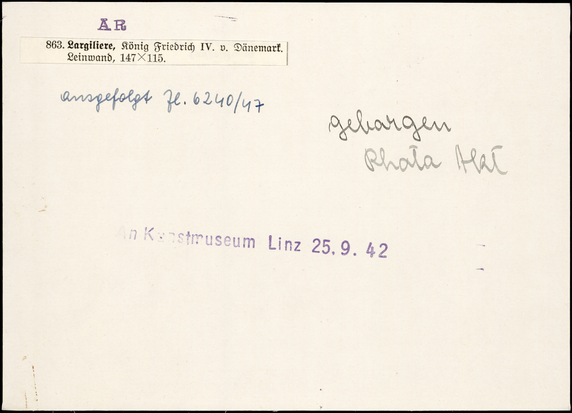 | Beschreibung | Largiliere, König Friedrich IV. v. Dänemark. Leinwand, 147 X 115. | |
