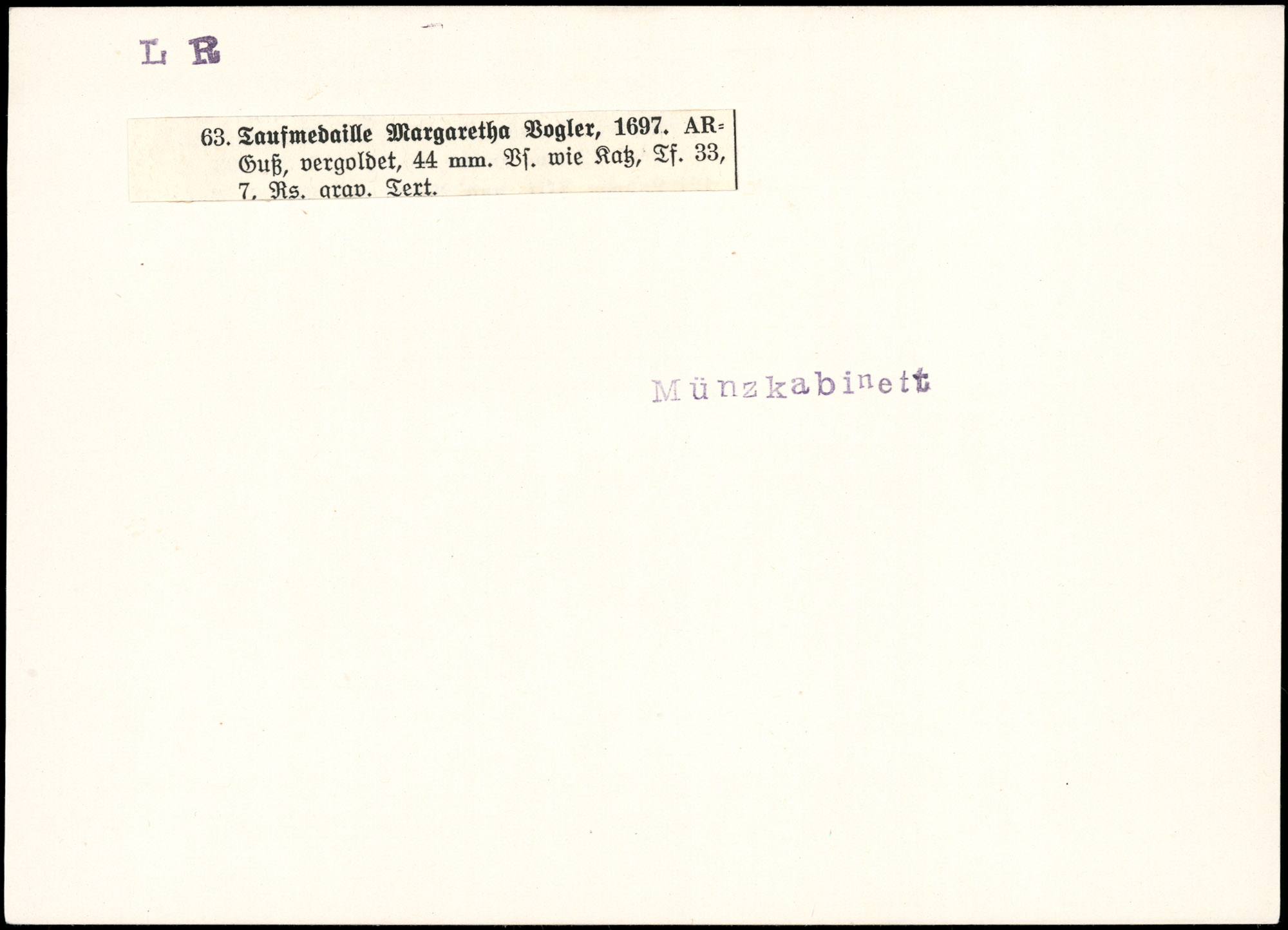 | Katalog Überschrift 1 | Medaillen, Sammlung L. v. R. | |