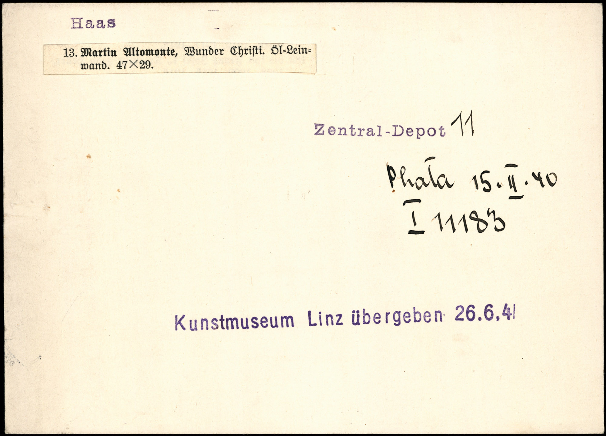 | Index card annotation | - | Zentral-Depot 11 Photo 15.2.40 I 11183 Kunstmuseum Linz übergeben 26.6.41 |