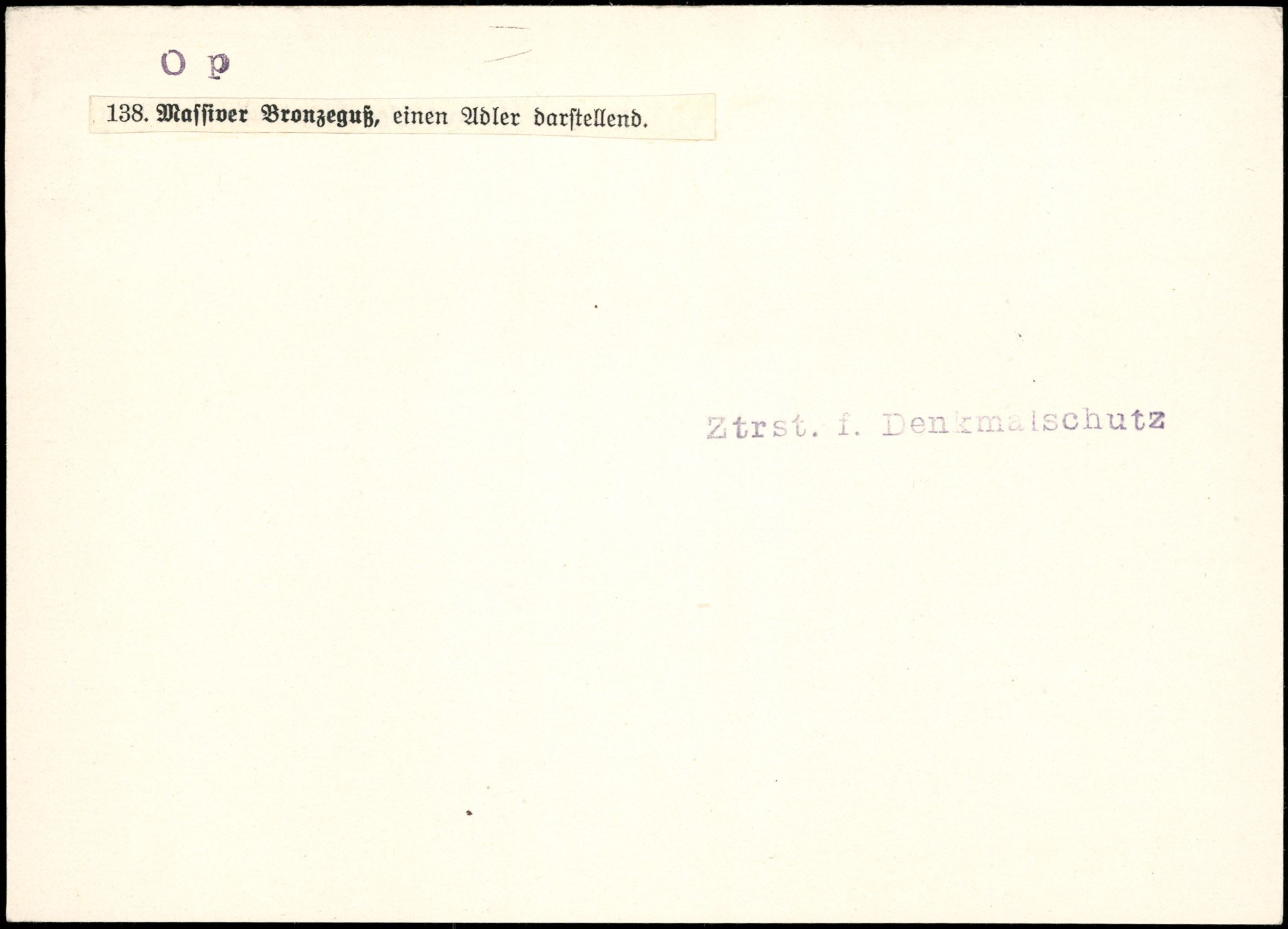| Description | Massiver Bronzeguß, einen Adler darstellend. | Karteikarte nicht auffindbar |