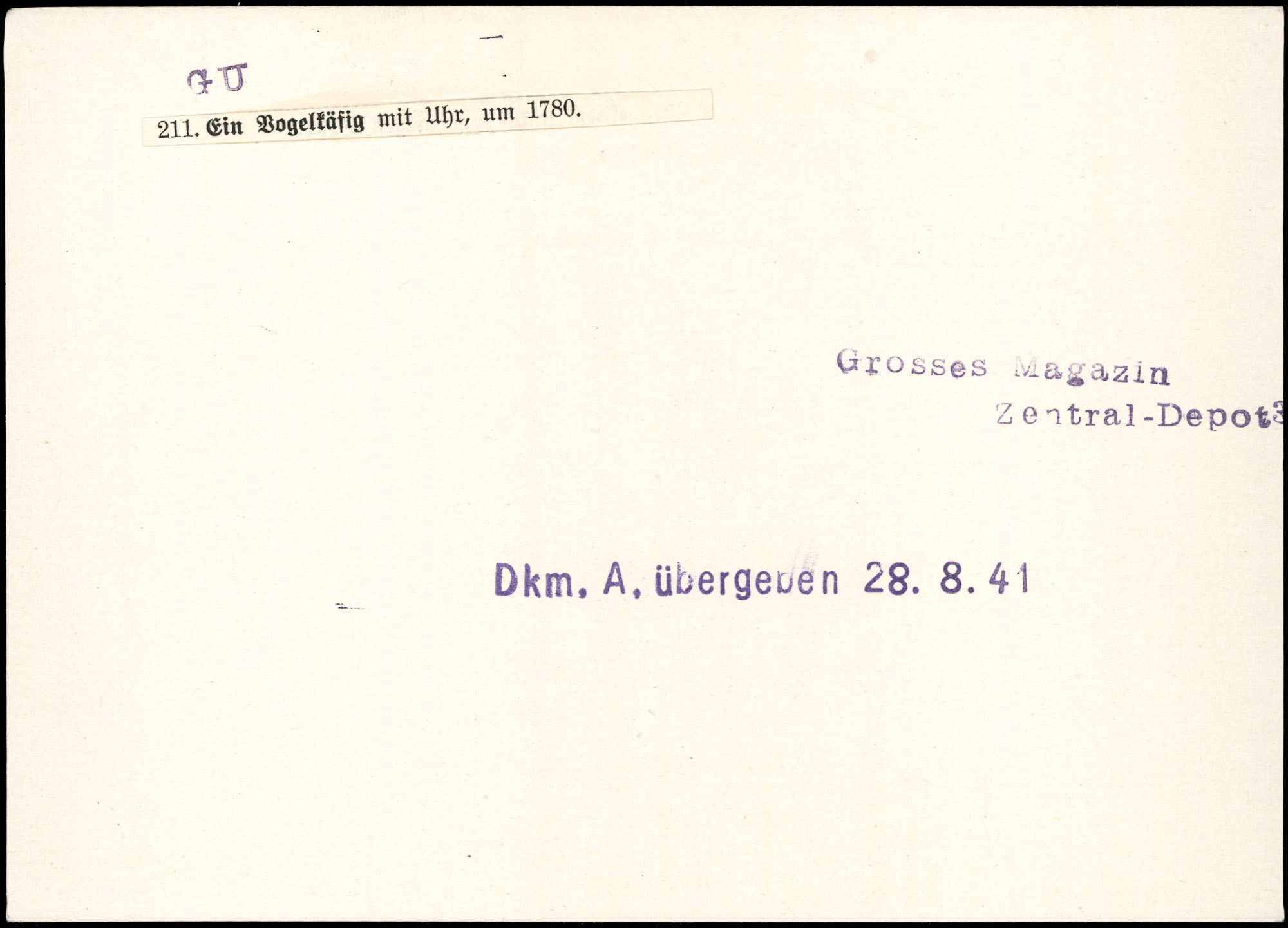 | Index card annotation | Großes Magazin Zentral-Depot Dkm.A. übergeben 28.8.41 | ausgefolgt am 19.9.1946 Zentral-Depot Großes Magazin Dkm.A. übergeben 29.8.41 |