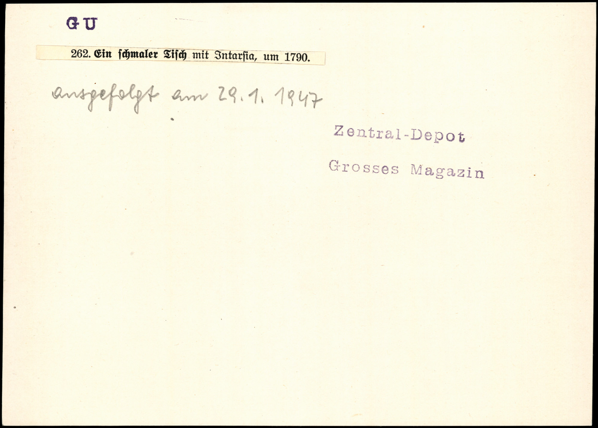| Description | Ein schmaler Tisch mit Intarsia, um 1790. | |