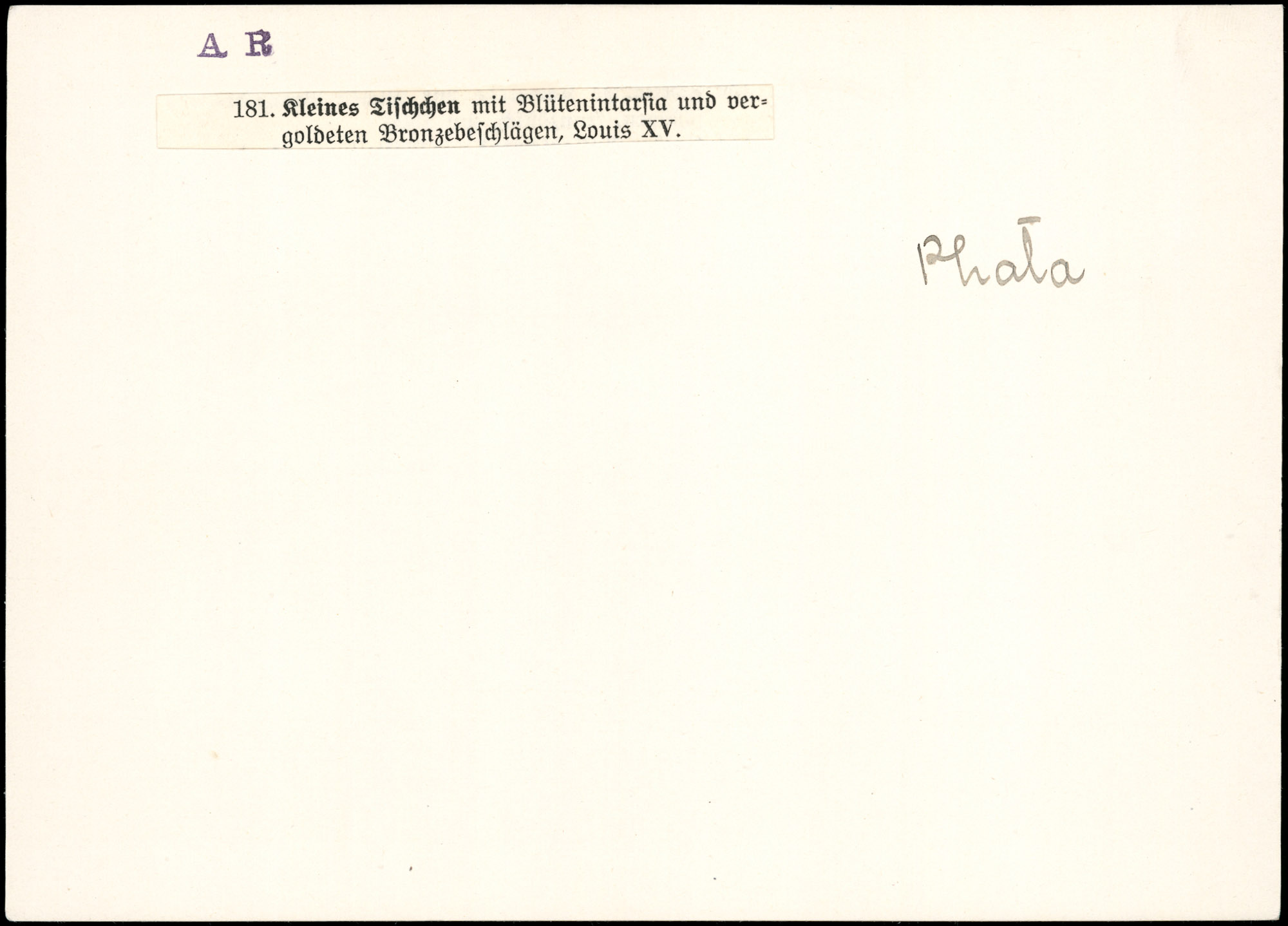 | Index card annotation | Photo | Karteikarte: ausgefolgt am 16.4.48 Zl.7250/48 Zentral-Depot Saal 5 Kiste - No F Photo Foto: Photo-Frankenstein Wien Vi., Mollardgasse Nr. 69 K 1537 |
