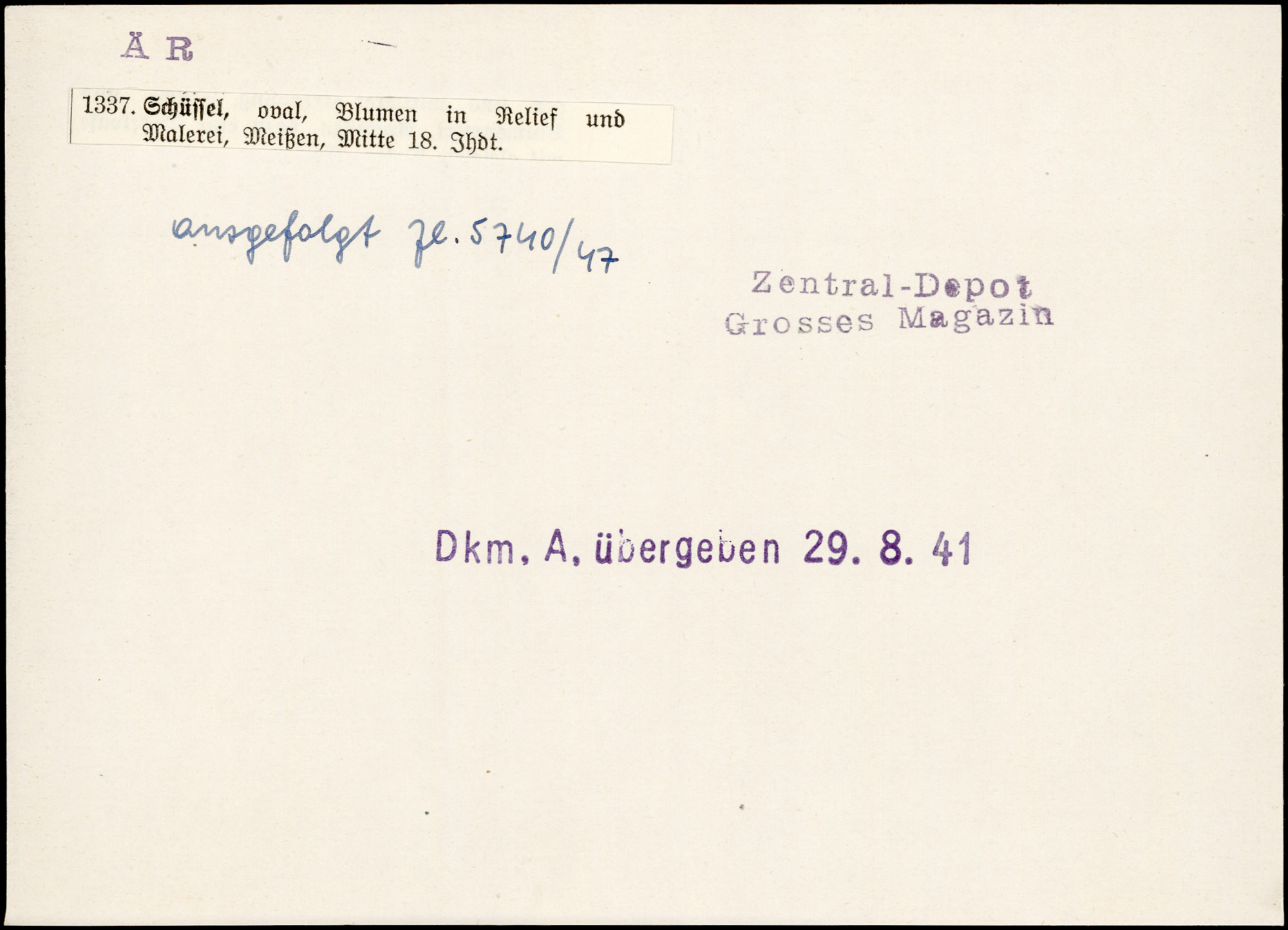 | Index card annotation | Großes Magazin Zentral-Depot Dkm.A. übergeben 28.8.41 | ausgefolgt Zl.5740/47 Zentral-Depot Großes Magazin Dkm.A.übergeben 29.8.41 |