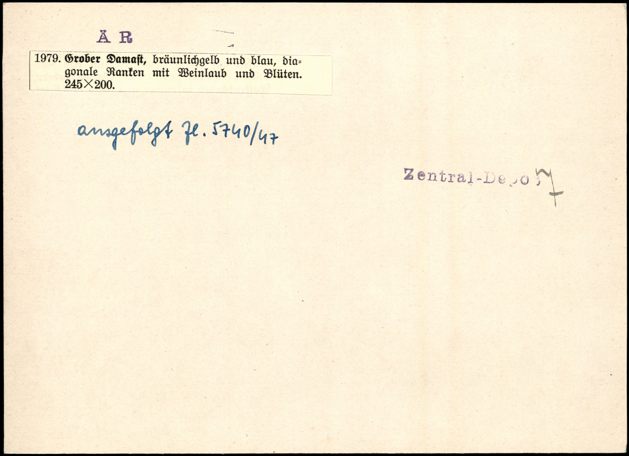 | Index card annotation | Zentral-Depot 7 | ausgefolgt Zl.5740/47 Zentral-Depot 7 |