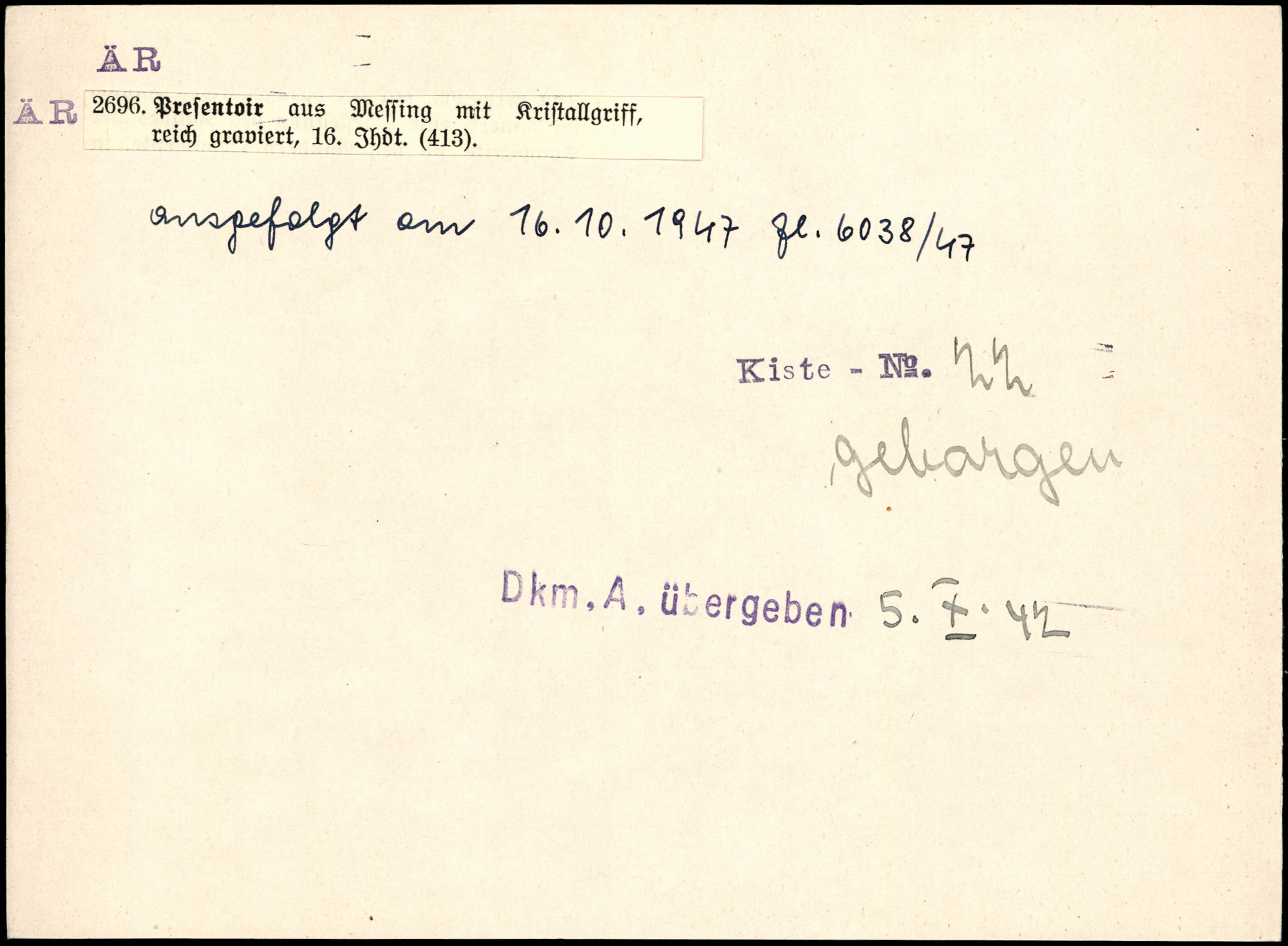 | Karteikarte Annotation | Kiste - No 22 geborgen | ausgefolgt am 16.10.1947 Zl.6038/47 Kiste - No 22 geborgen Dkm.A. übergeben 5.X.42 |