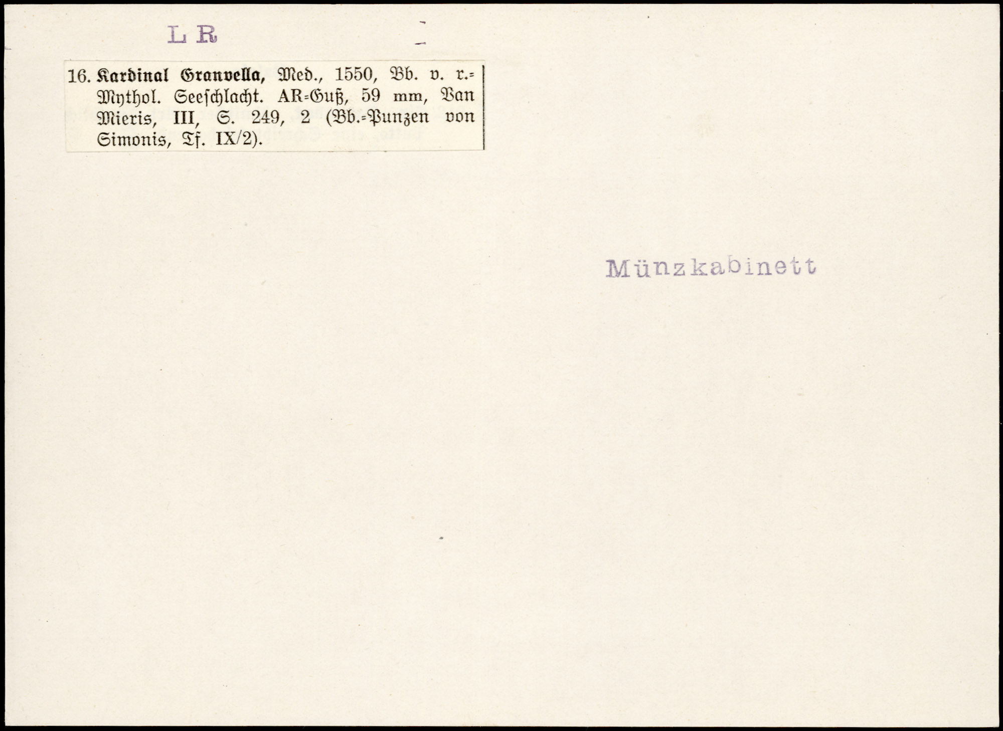 | Beschreibung | Kardinal Granvella, Med., 1550, Bb. v. r. Mythol. Seeschlacht. AR-Guß, 59 mm, Van Mieris, III, S. 249, 2 (Bb.-Punzen von Simonis, Tf. IX/2). | |